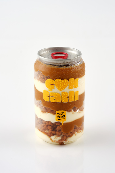 Özel konsept şişesinde, çıtır lotus parçacıkları, yumuşacık pastacı kreması, karamelize lotus sosu